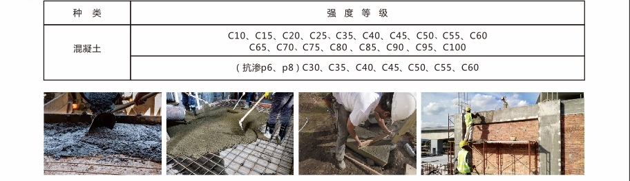 我司的目前主要研發(fā)和供應(yīng)的混凝土產(chǎn)品有:C10、C15、C20、C25、C30、C35、C40、C45、C50、C55、C60、C65、C70、 C75、C80,并成功研發(fā)出C85、C90、C95、C100超高強度混凝土。